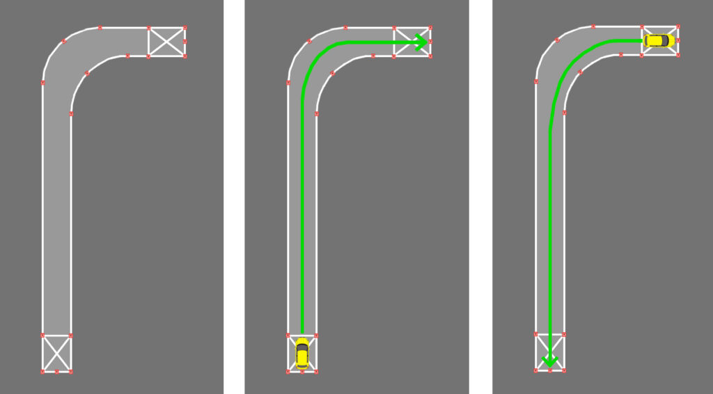 Startujesz z pola początkowego ➡️ jedziesz prosto i po łuku do pola zatrzymania ➡️ wracasz tą samą trasą do miejsca startu.